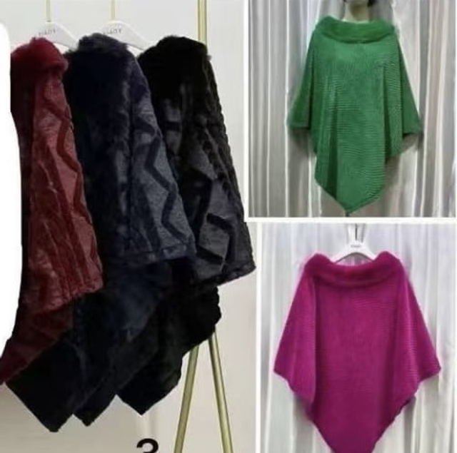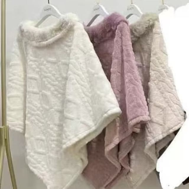 Mantella in ciniglia con girocollo morbidissimo e decorazione rombi
